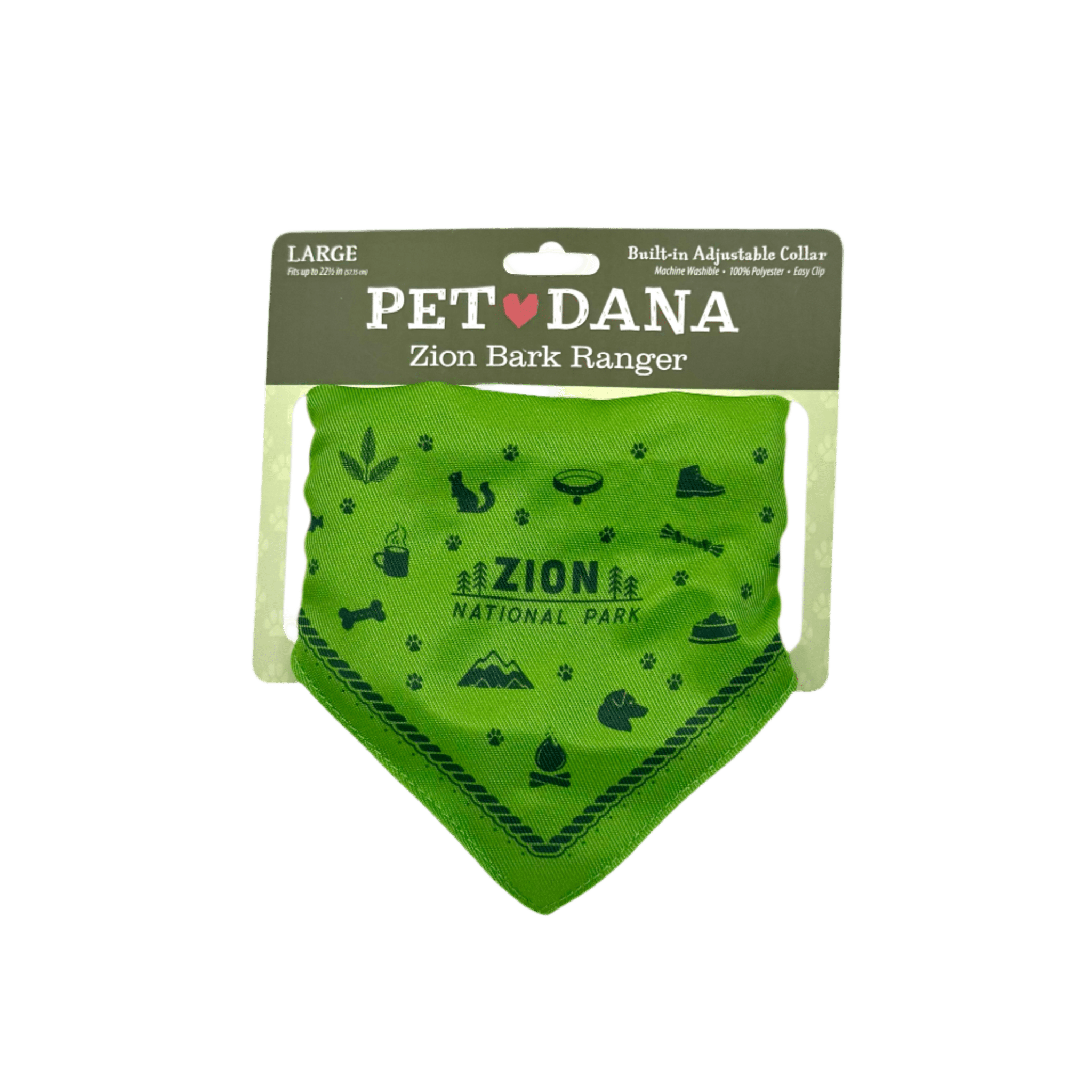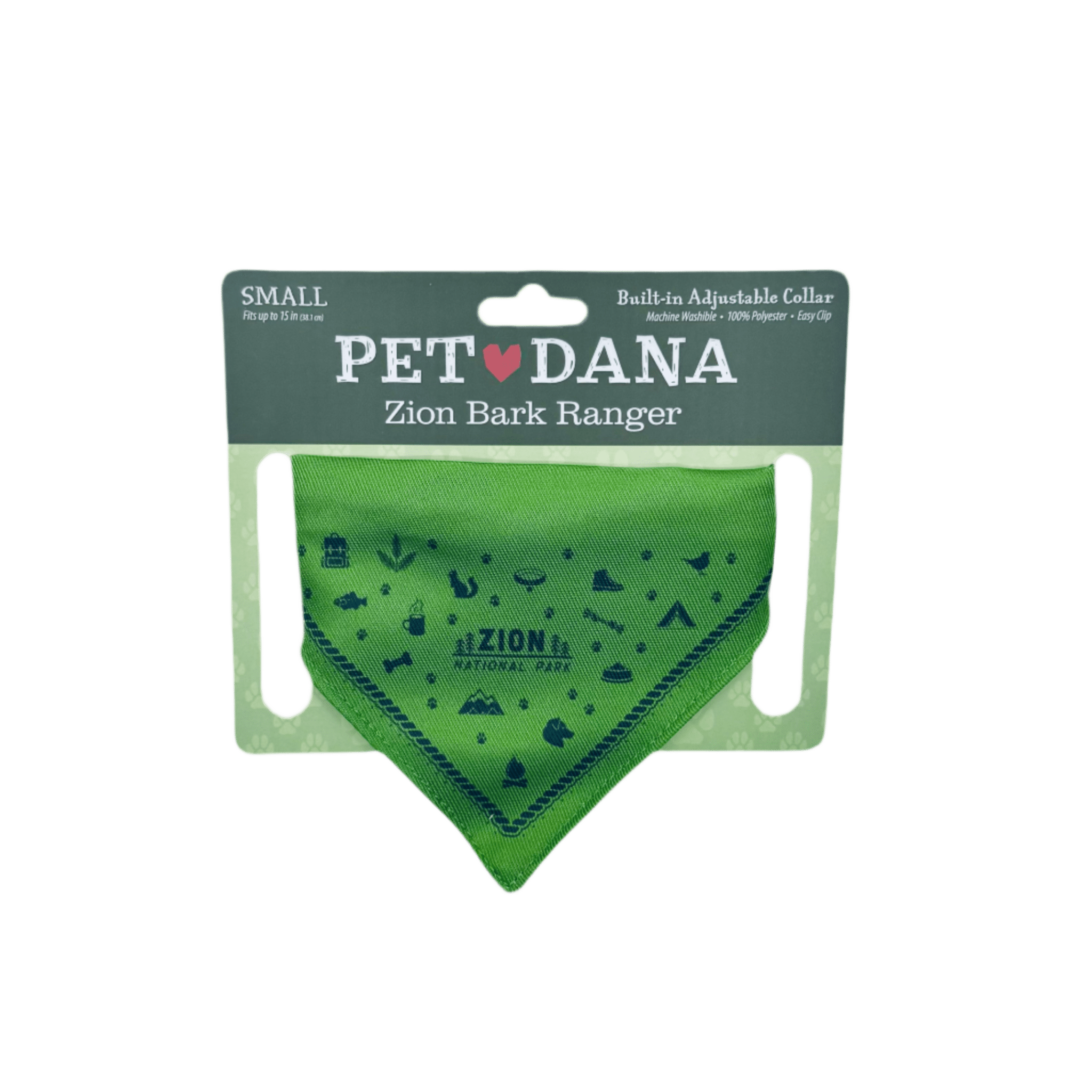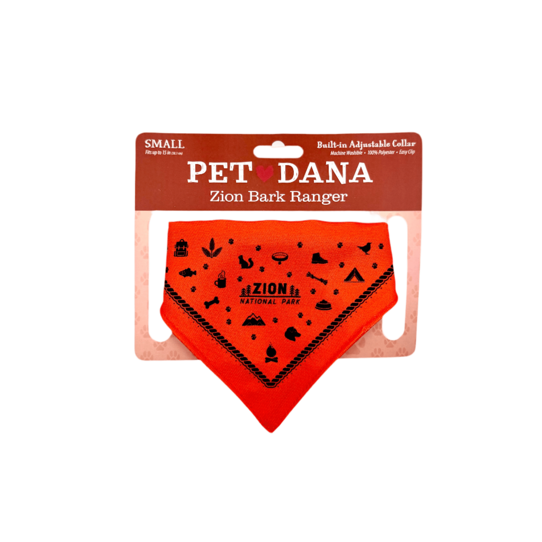 A bandana for Bark Rangers, designed for dogs, combining style and comfort while showing support for Zion’s pet-friendly stewardship program.