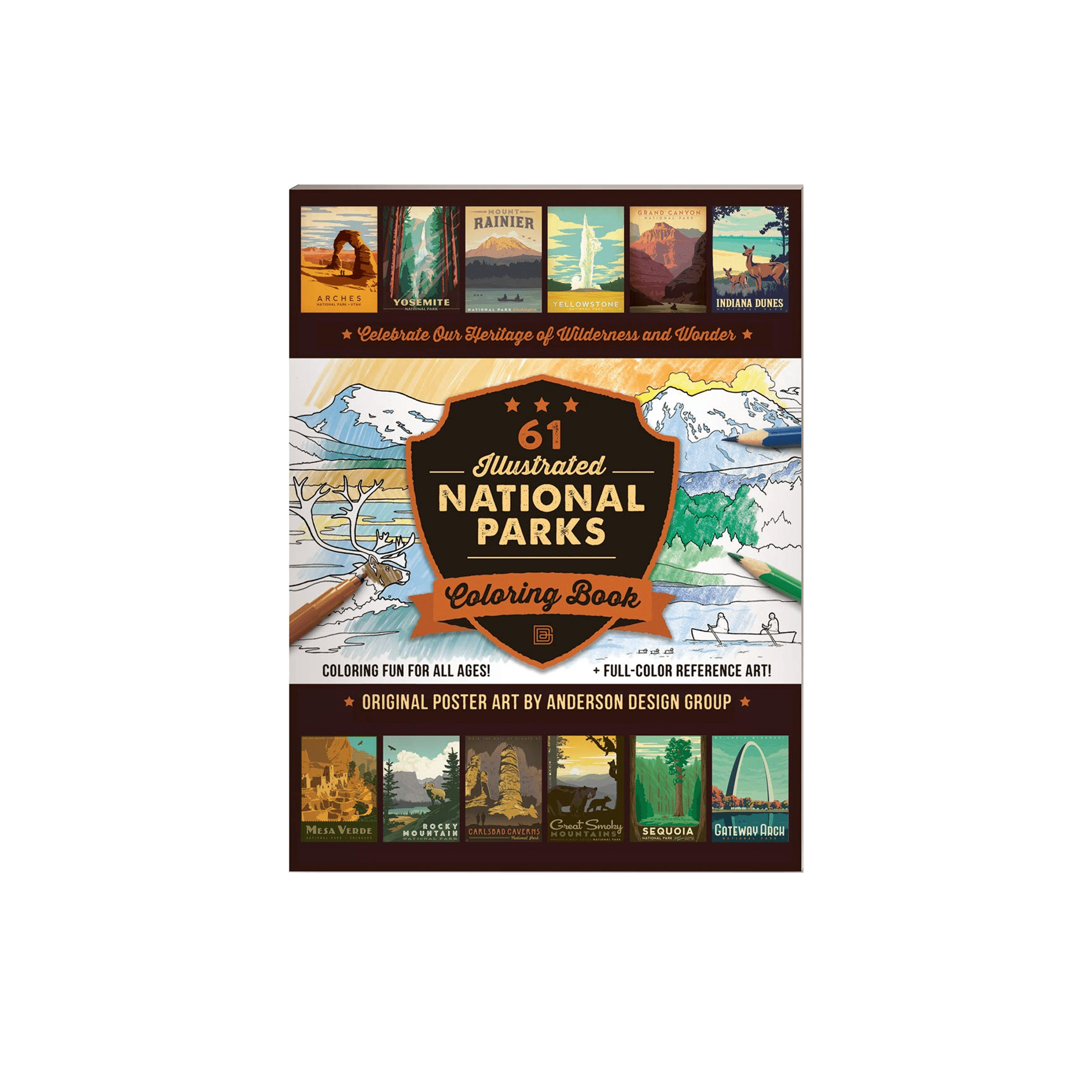 This deluxe 72-page coloring book is perfect for coloring enthusiasts of all ages and skill levels. Anderson Design Group took their award-winning poster art and redrew each composition by hand to create 64 coloring pages that feature all 59 of the National Parks plus 5 bonus pages of popular indigenous animals. They have also included 8 full-color pages with reference imagery of their original poster designs, plus quotes from famous nature lovers like Theodore Roosevelt and John Muir. This deluxe 8.5" x 11" coloring book is printed on gallery-grade drawing paper with perforated pages so you can easily tear out your masterpieces and display them with pride. Created for use with crayons, colored pencils or felt tip markers, this beautiful and educational book offers hours of coloring fun!
