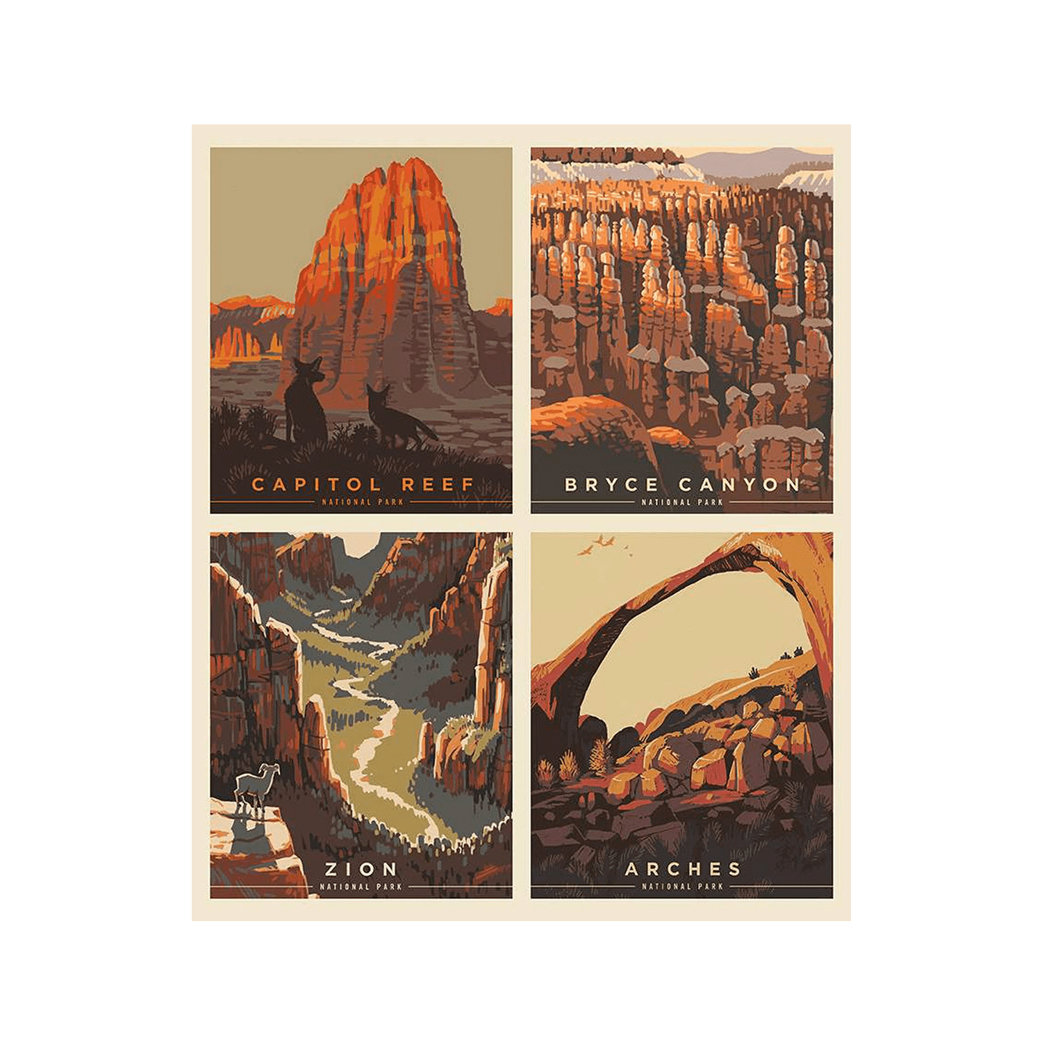 This set of four fabric squares features vivid images of Zion National Park, printed on premium fabric for quilting, sewing, or display. Each square highlights a unique scene, offering inspiration for creative projects while celebrating the park’s natural beauty.