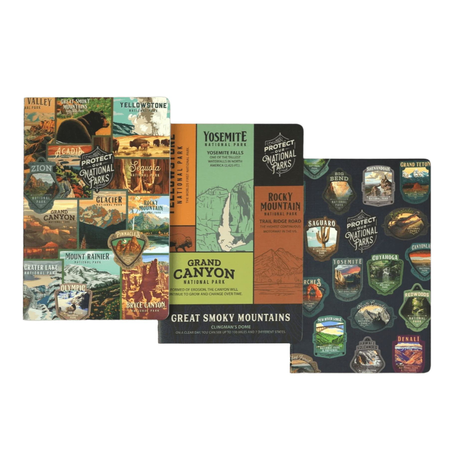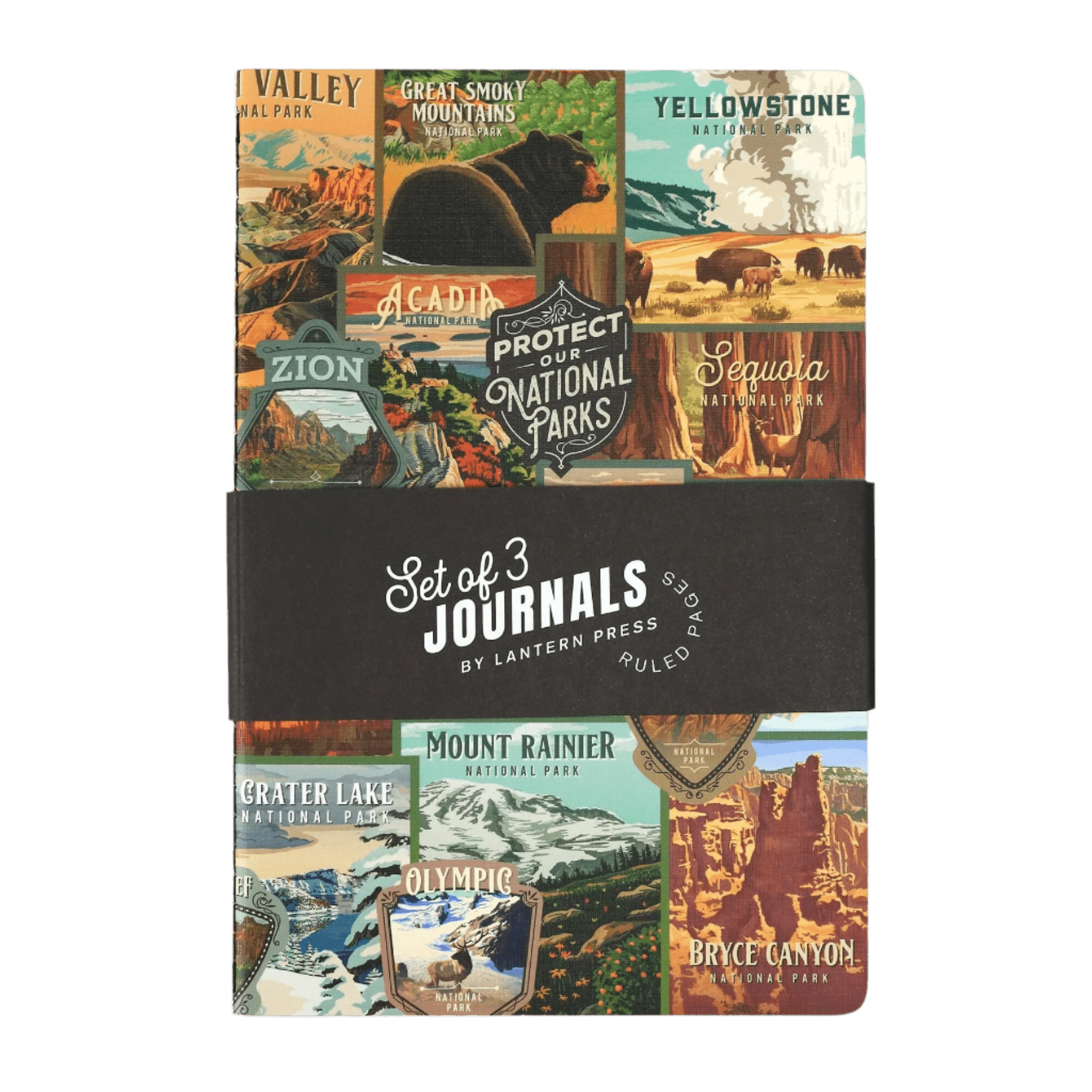In honor of our National Parks, this thoughtfully designed, beautifully illustrated collection set of 3 different journals reminds us of our treasures worth protecting. Inside cover of each journal provides creative ways to responsibly enjoy our National Parks and a checklist for marking them off your bucket list.