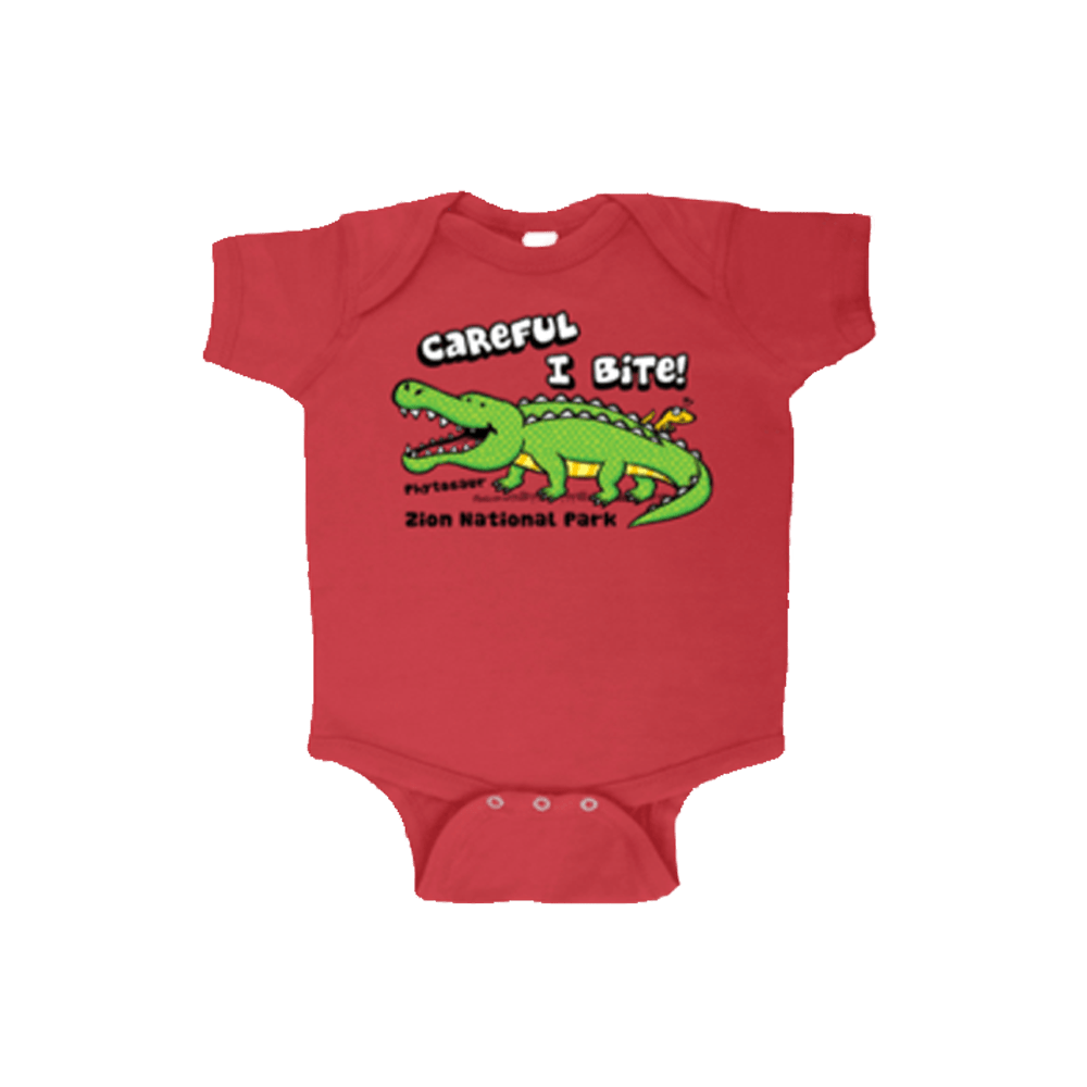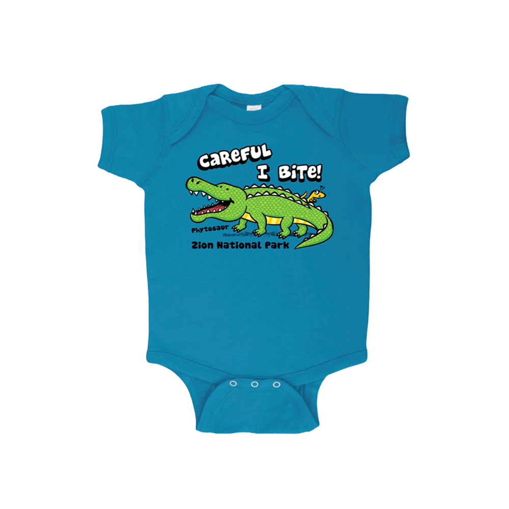 This youth onesie features a playful phytosaur design with the phrase "Careful I Bite," inspired by the prehistoric creatures once roaming the Zion National Park area. Crafted for comfort and durability, it’s perfect for young explorers who appreciate a touch of natural history in their wardrobe. Ideal for layering during outdoor adventures or casual wear, this onesie combines educational charm with practical style.