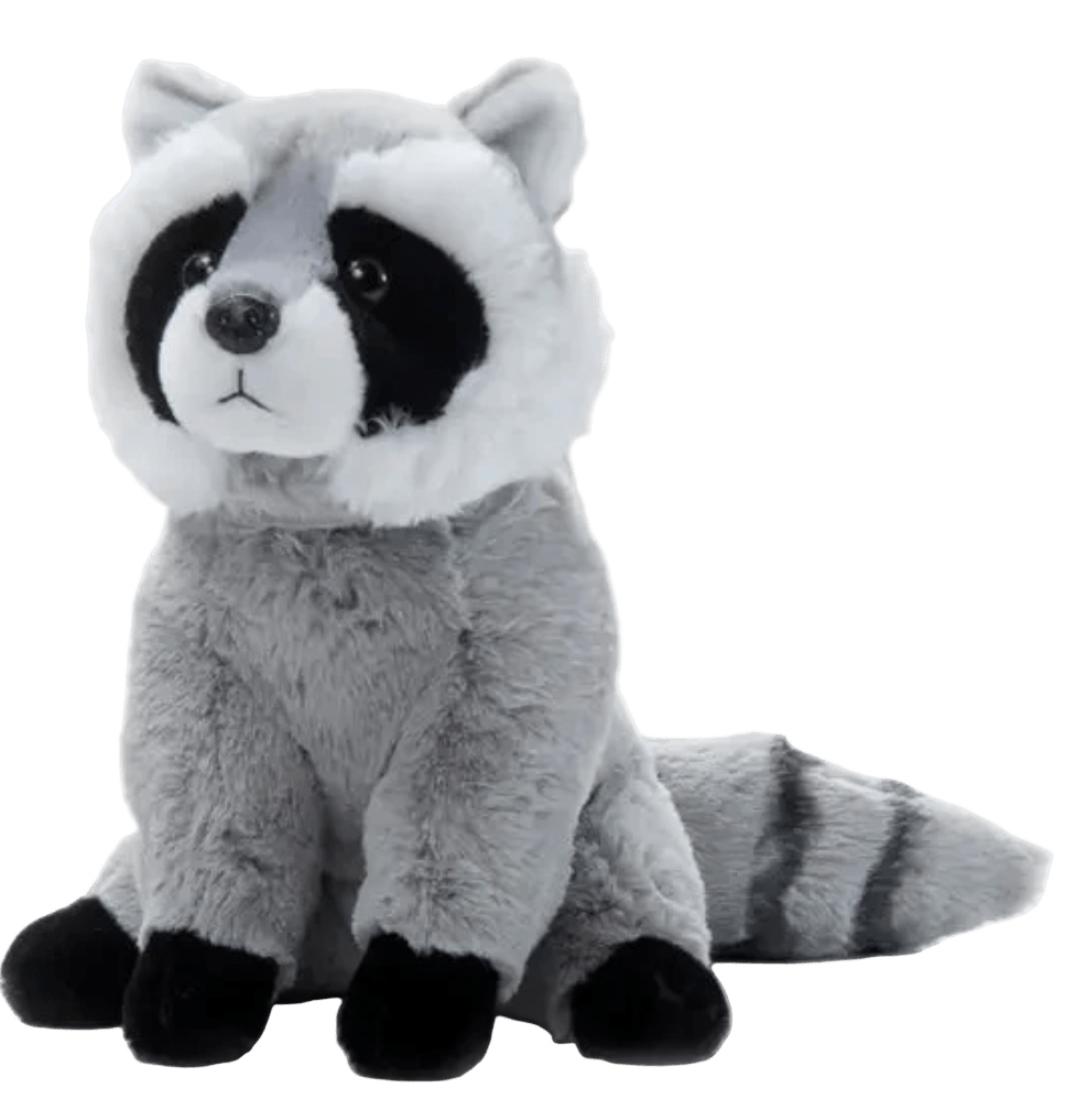 Summon adventure from the wild with this raccoon plush toy with playful eyes and small pointy ears. embrace a curious nature with this raccoon stuffed animal that is ideal as birthday gifts for boys and girls.