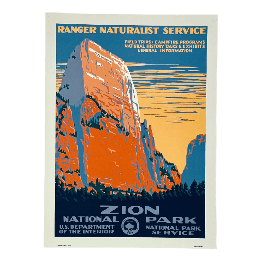 Originally produced between 1938 and 1941, this Zion WPA image is one of many stunning historical posters that have been painstakingly restored by Ranger Doug Enterprises.