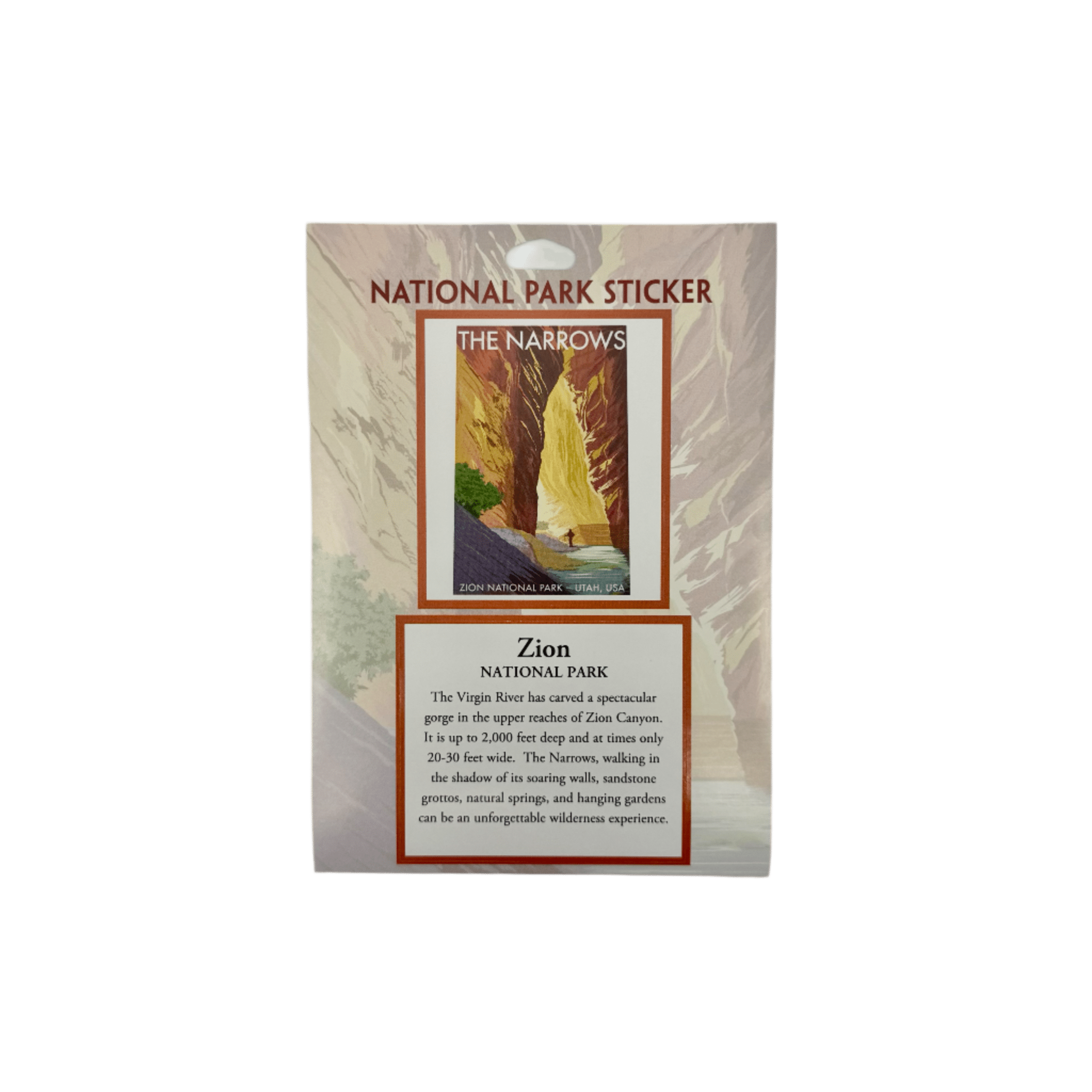 Celebrate your adventure with the Narrows Retro Ranger Passport Sticker. Designed with a vintage aesthetic, this durable sticker captures the iconic spirit of the Narrows trail. Perfect for personalizing gear or memorabilia, it offers a lasting tribute to your journey through one of Zion National Park’s most beloved landscapes.