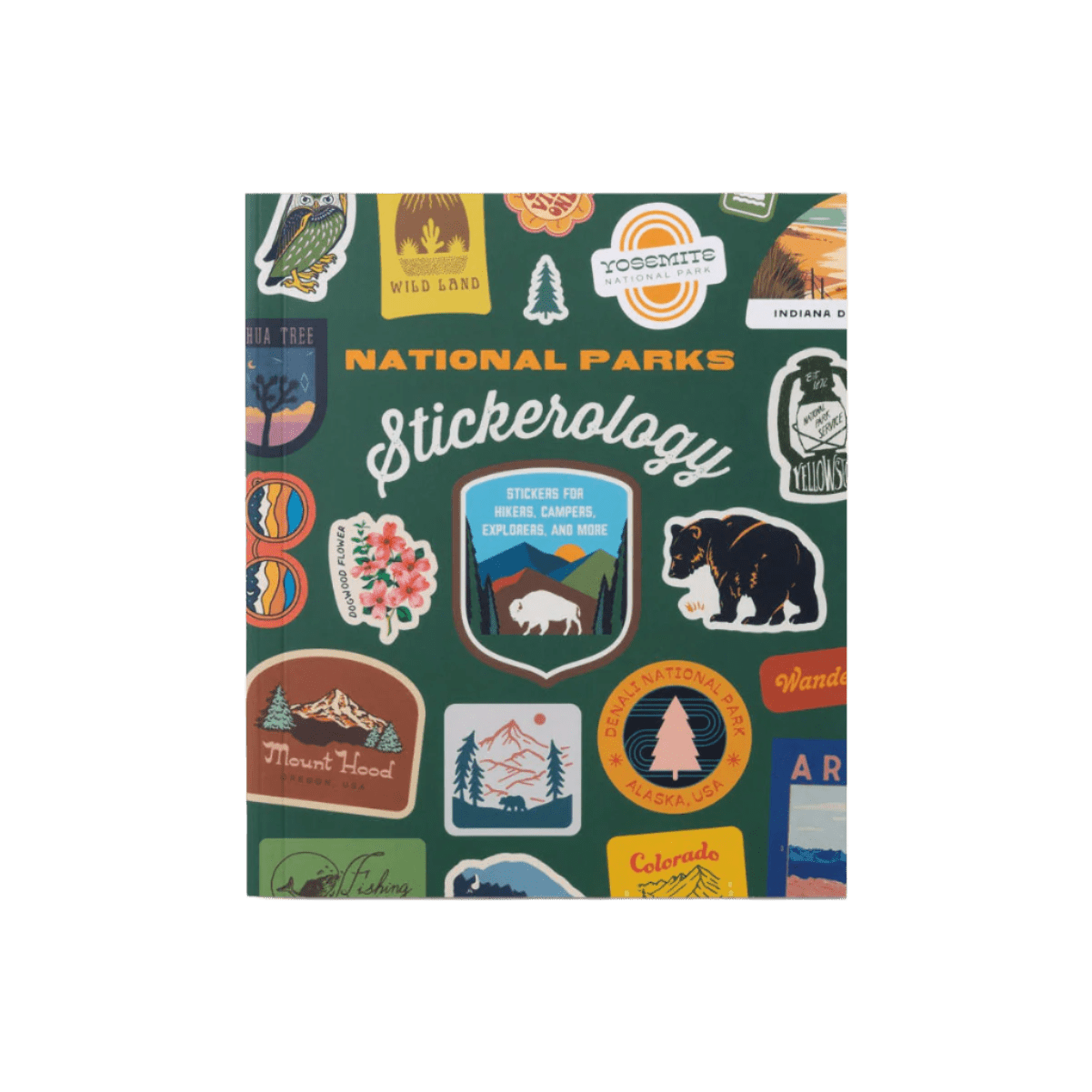From iconic vistas like the stone arches in Utah to backpacks, hiking shoes, and slogans like “Take the Trail Less Traveled,” this sticker book will get you excited for your next visit.