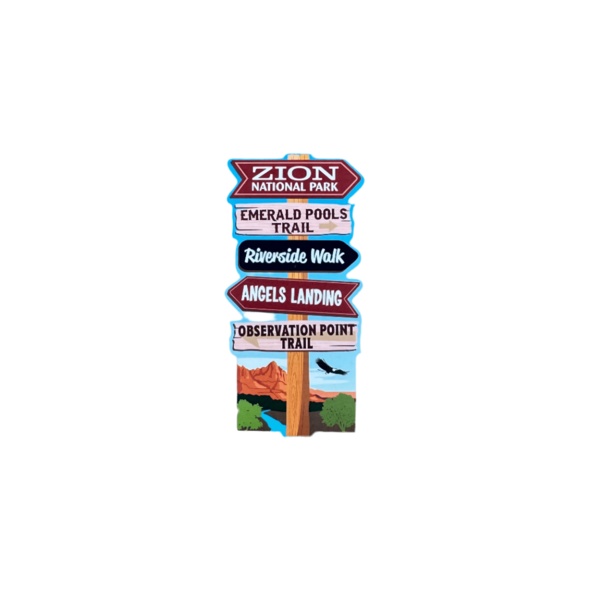 This Zion Trail Sign sticker features a detailed design inspired by the iconic trail markers found throughout Zion National Park. Crafted for durability and vibrant color retention, it’s perfect for outdoor gear, laptops, or vehicles. Show your appreciation for Zion’s natural beauty with this expert-quality decal that withstands the elements while celebrating your adventurous spirit.