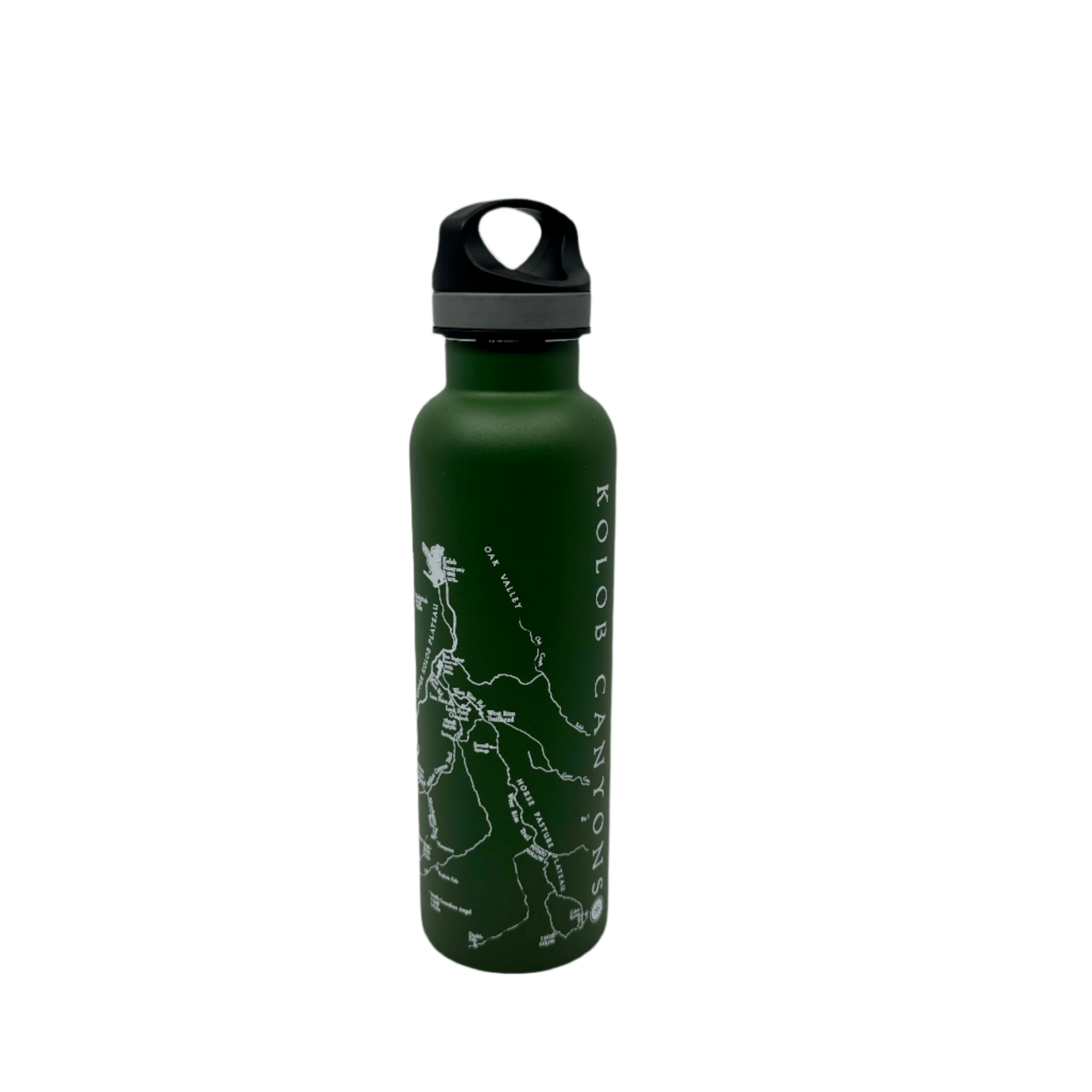 Stay hydrated in style with our green Kolob Map water bottle. Made with durable materials, this bottle is perfect for adventurous hikers and travelers. Show your love for the outdoors while keeping your drink cold and refreshing. Take your next sip in the beautiful Kolob Canyon.